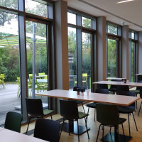 “ Sehr schöne öffentliche Kantine mit großem Außenbereich. Sie ist zur Hauptessenszeit gut besucht. Man muss keine Angst haben, daß sie mangels Nachfrage geschlossen wird. Die Qualität der Speisen ist gut. Den Speiseplan findet man im Internet. Es ist im nahen öffentlichen Bereich mit 2 Stunden Parkscheibe gut zu Parken. ”